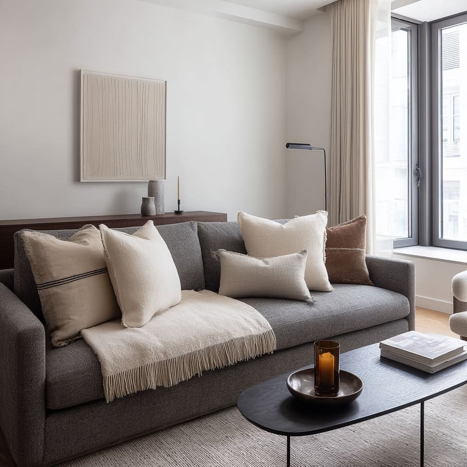 Ιδέες για μαξιλάρια σε γκρι καναπέ, χρωματικοί συνδυασμοί για κομψό σαλόνι